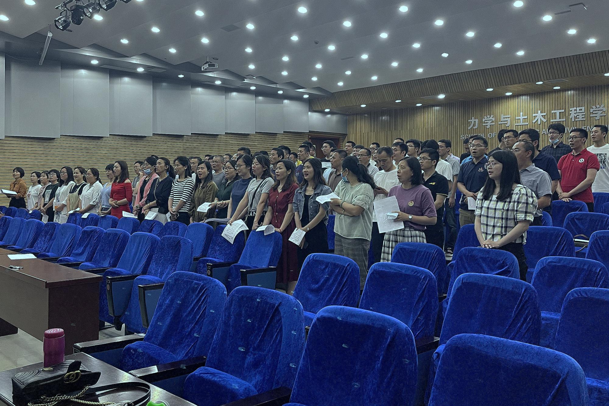 党委书记高顶的指导下,组织全体教职工同唱一首歌,祝福伟大的党、伟大的祖国。参加合唱的全体教职工,情绪激昂、精神饱满,深情唱响《没有共产党就没有新中国》,表达对党的热爱和祝福,展示了全体教职工斗志昂扬、奋发有为、蓬勃向上的新时代精神风貌。