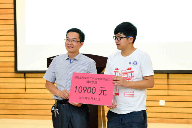 接受了2004级校友的捐赠。见面会后,全体师生合影留念。