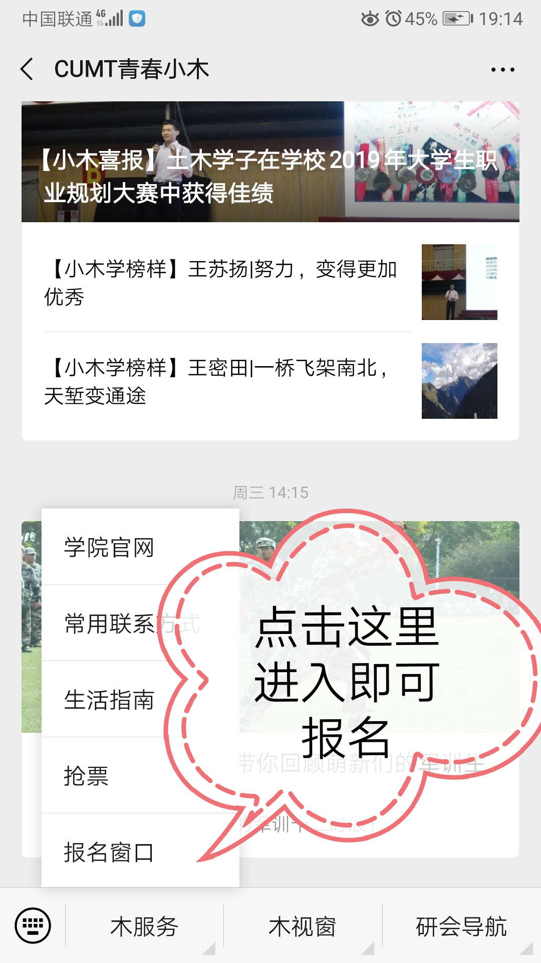 1. 微信搜索并关注公众号:“CUMT青春小木”;