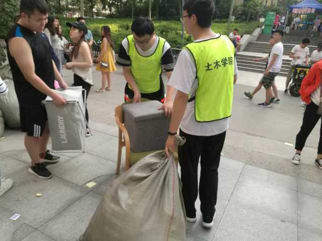 5·12青年志愿者协会于竹三和竹四学生公寓开展欢送大四毕业生志愿活动,帮助离校的毕业生们搬运行李。