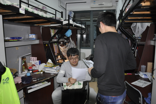 青年志愿者协会的十几名志愿者在桃三宿舍楼开展了扫楼宣传活动。