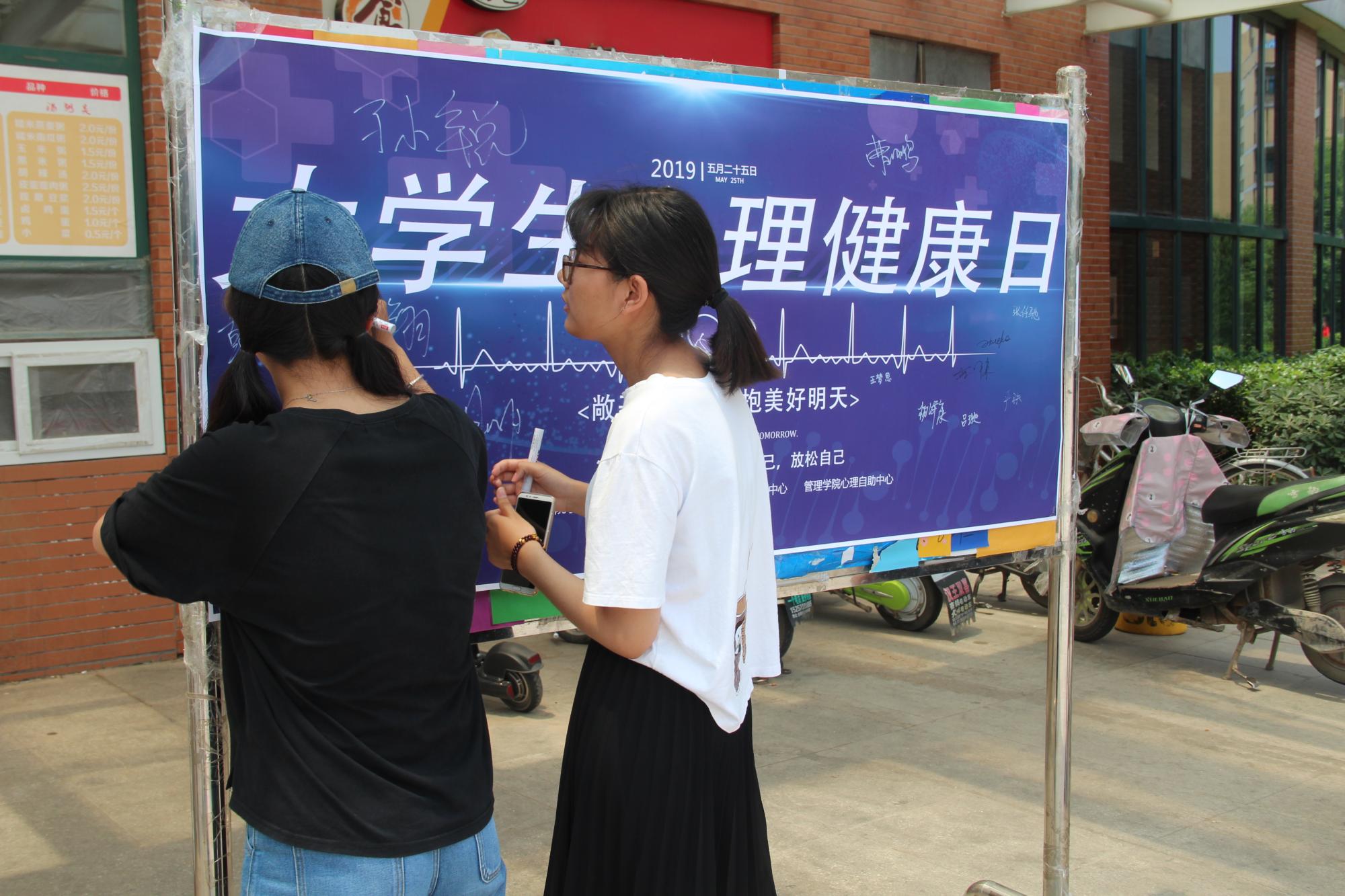 心理自助中心指导老师曹鹏前来签名,并表示对宣传活动的支持。