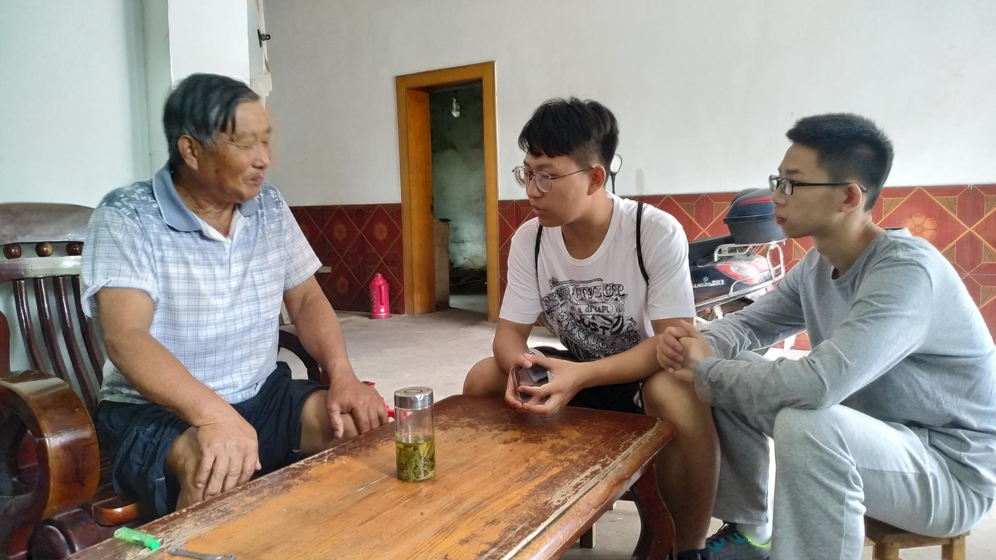 队员们与严爷爷正在交流