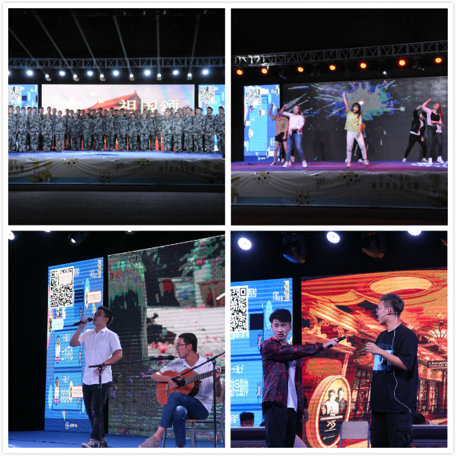 对新中国成立70周年的祝福,也彰显了土木学子多才多艺的一面。除节目表演外,晚会还设定了互动环节,在微信墙上进行抽奖,挑选幸运观众;同时,还邀请到台下2019级辅导员及兼职辅导员上台为新生歌唱并送去祝福,引来台下同学欢呼不断;最后,由2019级新生代表演唱《祖国颂》,再次表达对祖国的热爱。