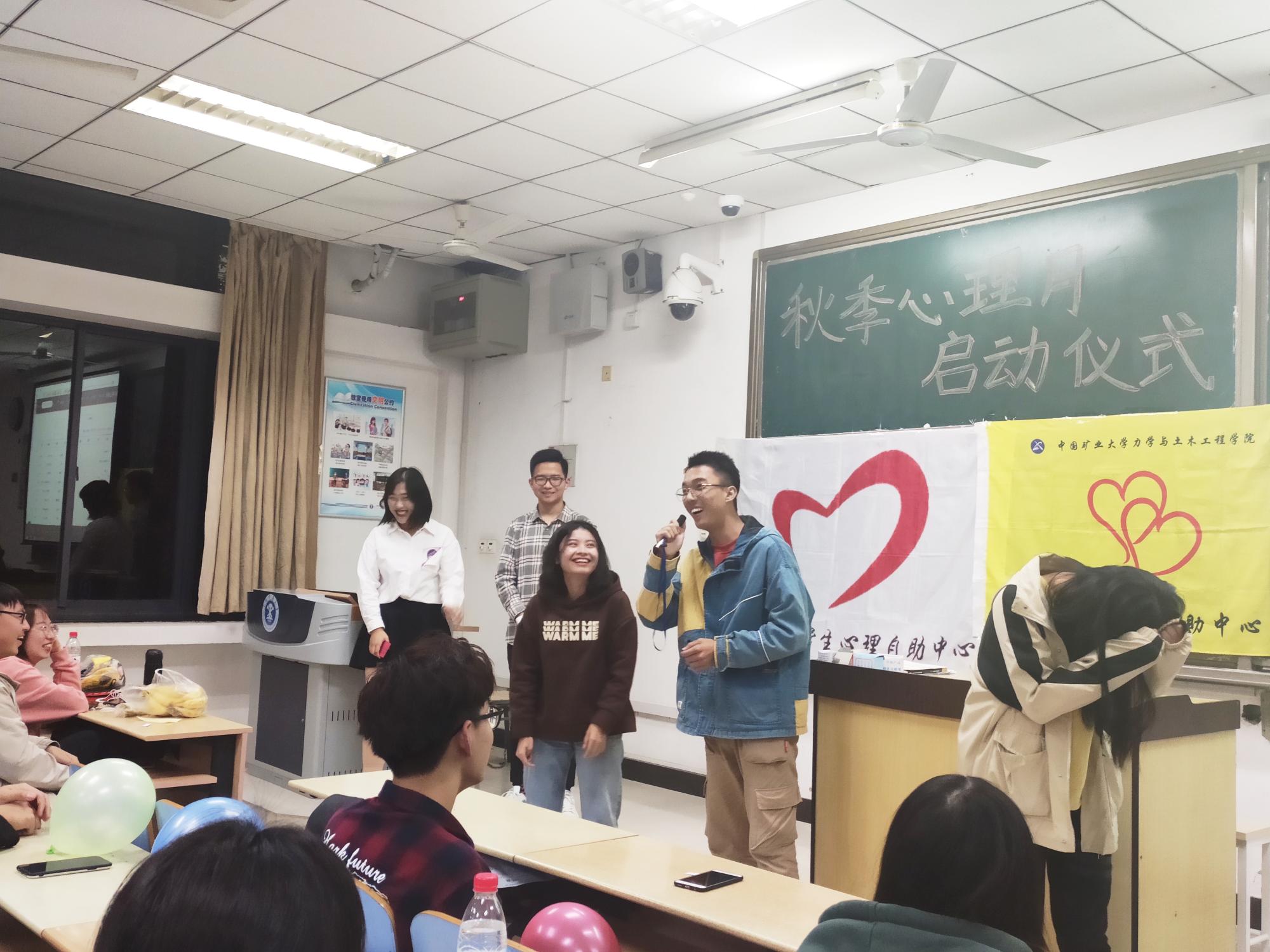 晚上七点,启动仪式正式开始。本次启动仪式以联谊的形式开展,让两院学生相互沟通、互相了解,以促进接心理月工作的顺利进行。启动仪式上,两院心助成员进行了精彩的表演,将教室内的气氛带动起来。两院心助主任在启动仪式上还对本次心理月活动流程进行了简单的介绍和各项工作的分析,让同学们充分了解秋季心理月开展的必要性。他们还表示希望借此机会,让每一位同学都成为一名“心理大师”。
