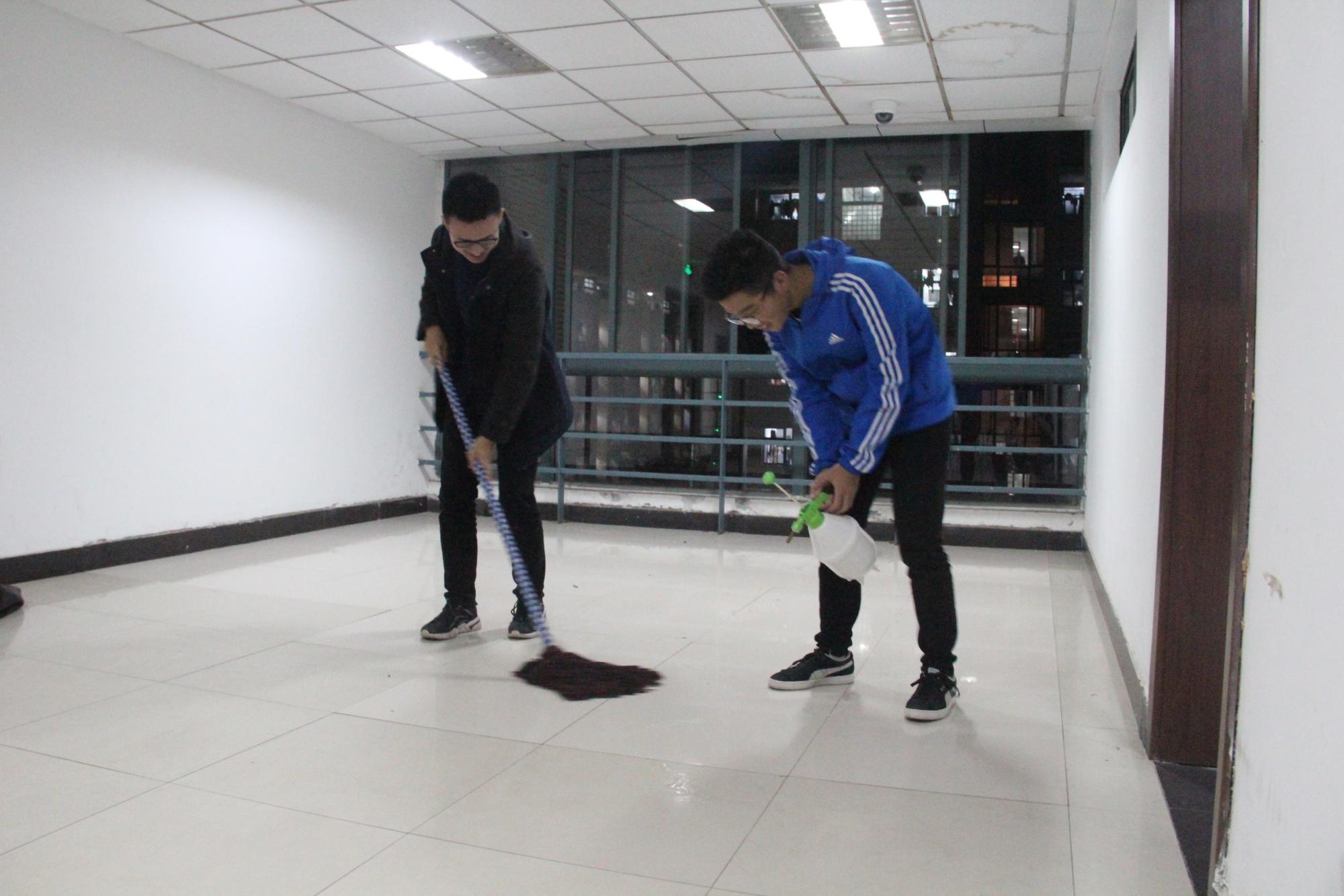 晚上九时三十分,志愿者们在桃三宿舍楼一楼大厅准时集合。在明确任务分工与注意事项后,志愿者们被分成许多小组,在生活部各干事的带领下开始了各自的任务。部分志愿者负责为桃三的每间宿舍分发消毒片,并告知同学们消毒片的正确使用方式。其余志愿者则负责清扫走廊间的枯枝败叶,配合着喷洒消毒水的同学,将走廊消毒擦净。在打扫的过程中,同学们注意到有的寝室已经准备休息,便自觉地降低干活时发出的音量,尽可能不影响到其他同学的休息。经过学生会生活部成员与志愿者们的共同努力,桃三宿舍楼清理工作顺利完成,地面变得一尘不染,洁净如新。