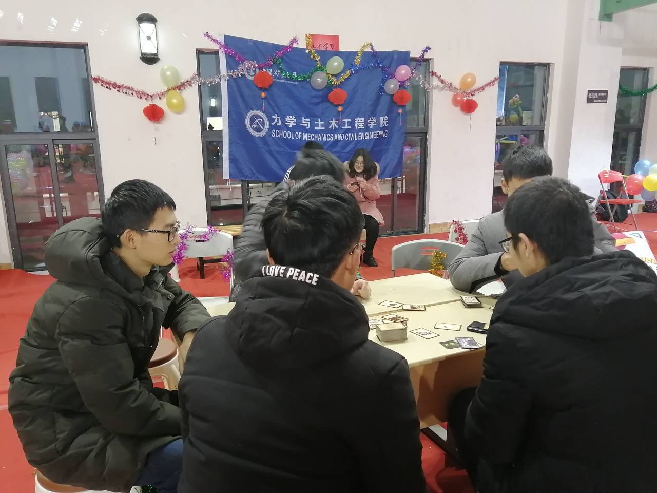 本次花灯主题为“建筑”。首先展示了一个大体育场的大跨结构,运用悬索和桁架,充分展示受力特点,突出现代化结构色彩。其次模拟了一个中式结构的框架,屋顶的流线型,体现了中式对称美,把中国古代传统结构概念“四梁八柱”展示的淋漓尽致。最后还将长廊与雪山融为一体,其中雪山用水和泥沙浆浇筑而成,长廊以其精美的建筑、曲折多变和极丰富的彩画而颇负盛名,将两者结合在一起,给予模型极大的想象空间。这些花灯制作精美,造型新颖,吸引路过的老师同学们驻足欣赏和拍照留念。游艺宫的活动项目也同样十分丰富,土木学子精心准备的桌游、棋类比赛、“时间炸弹”、“一反常态”、“飞镖解密”、“乒乓落地”等趣味小游戏吸引了众多老师和同学的参与,大家都乐在其中,现场气氛火热。