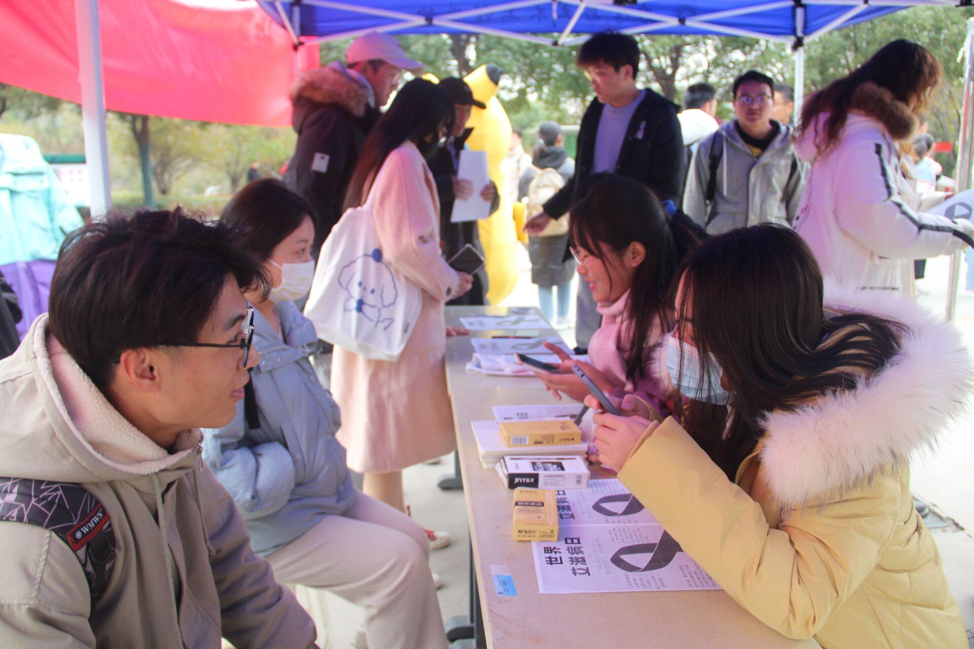 联合承办的“携手防疫抗艾,共担健康责任”艾滋病户外宣传活动于一食堂广场举行。