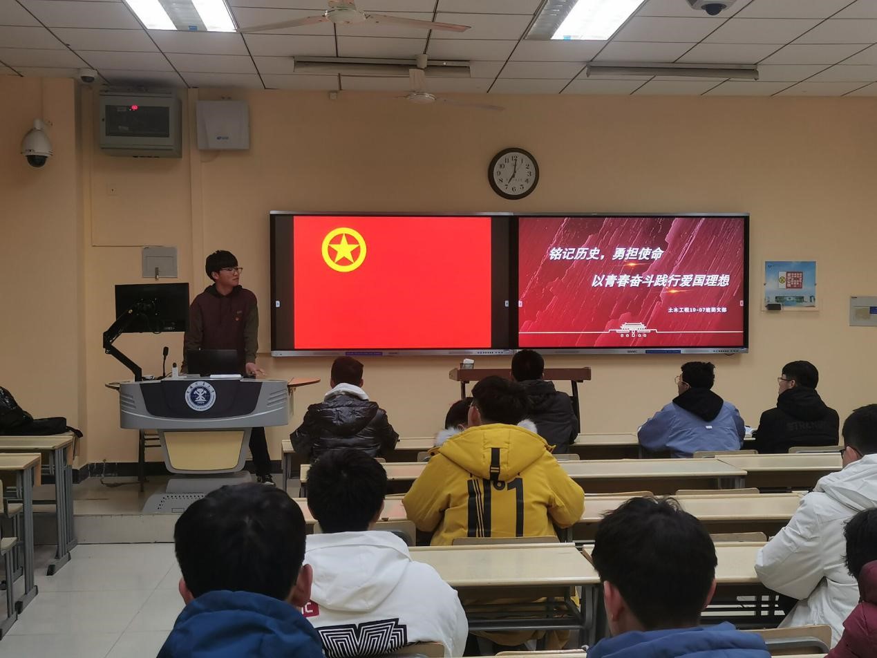 土木工程19-07班在博四B105开展“铭记历史,勇担使命,以青春奋斗践行爱国理想”主题团日活动与班会活动。
