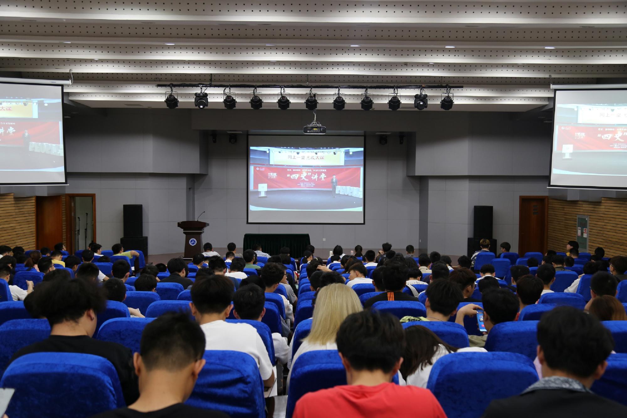 楼A108组织开展“全国大学生同上一堂思政大课之“同上新中国史思政大课”,300余名本科生及研究生参与本次学习活动。