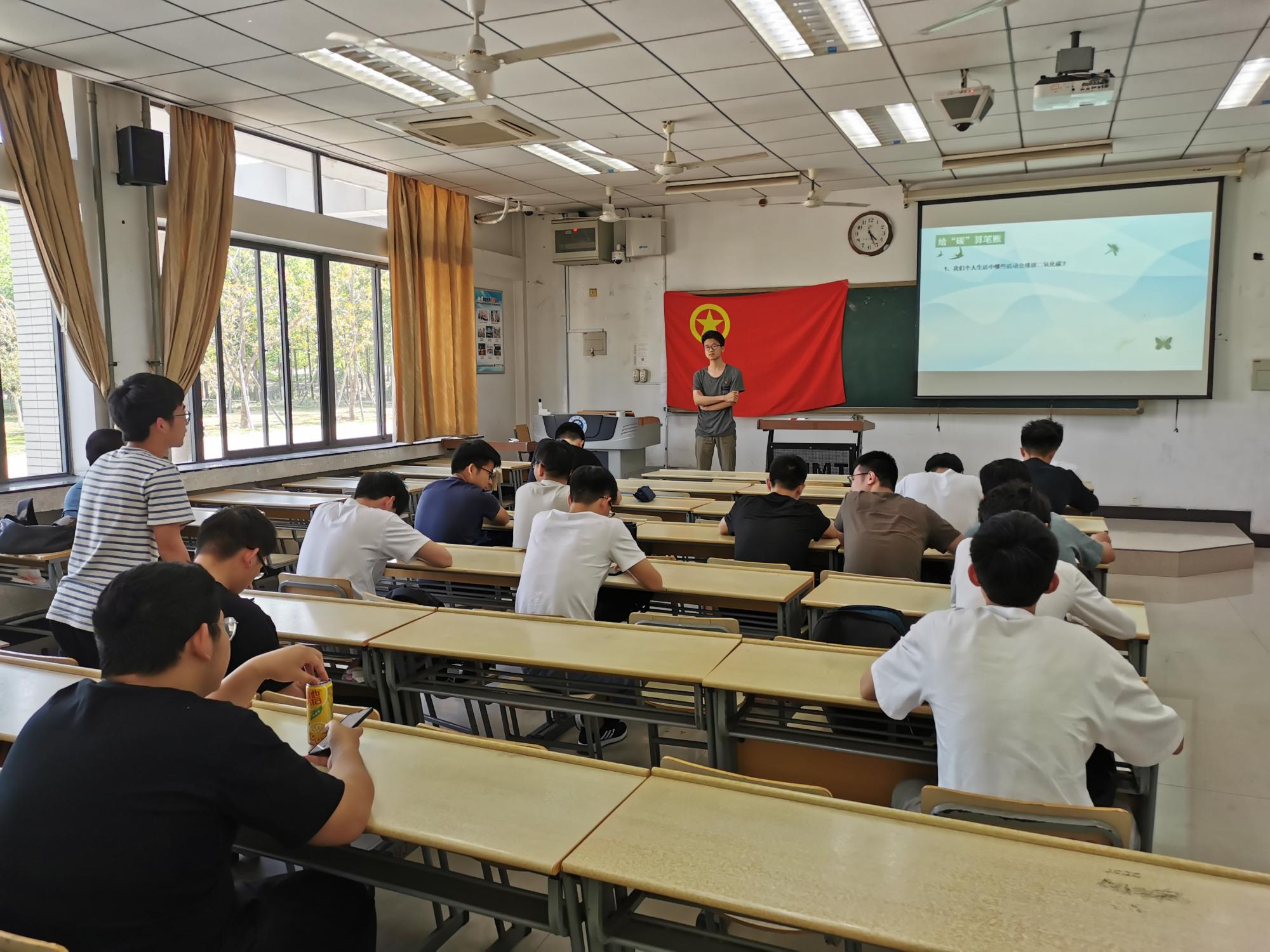 土木工程19级8班团支部在博四C106开展了“立足千秋,站位全球,从‘碳’认识生态文明”主题团日活动,团支书谭力文主持此次活动,团支部全体成员参加本次活动。