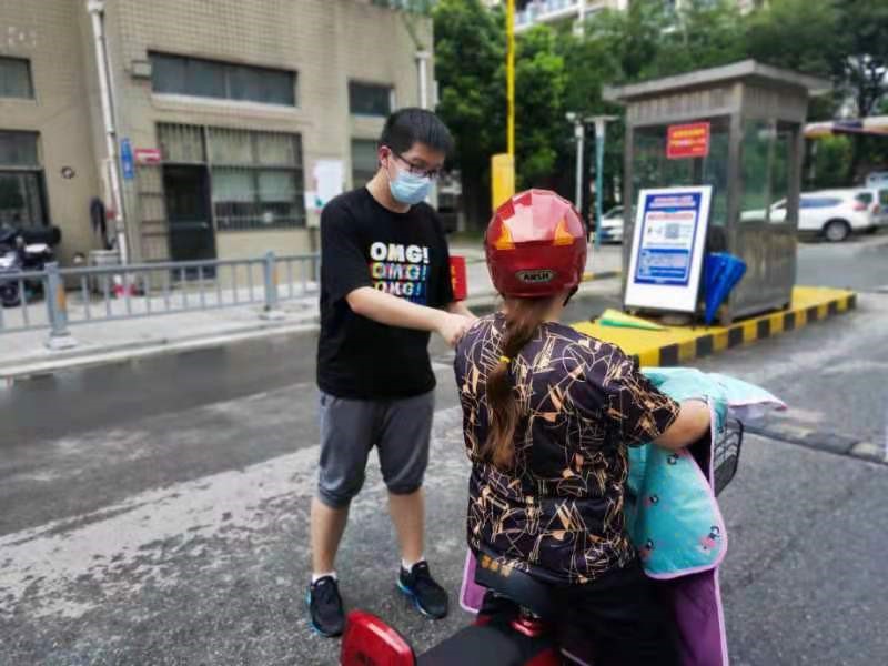 首先,实践团成员在社区门口询问居民是否申请预制码,并用流利的家乡话,帮助老年人解决了预制码和苏康码的申请问题。随后,实践团成员配合门卫检查了社区居民的行程码,并提醒广大居民佩戴口罩,减少人员聚集,提高防范意识。