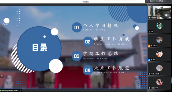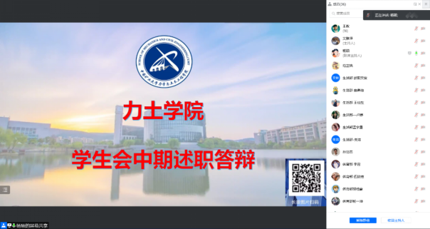 学生会主席团以及各位部长参加本次答辩。由于疫情影响,本次答辩采取线上方式进行。