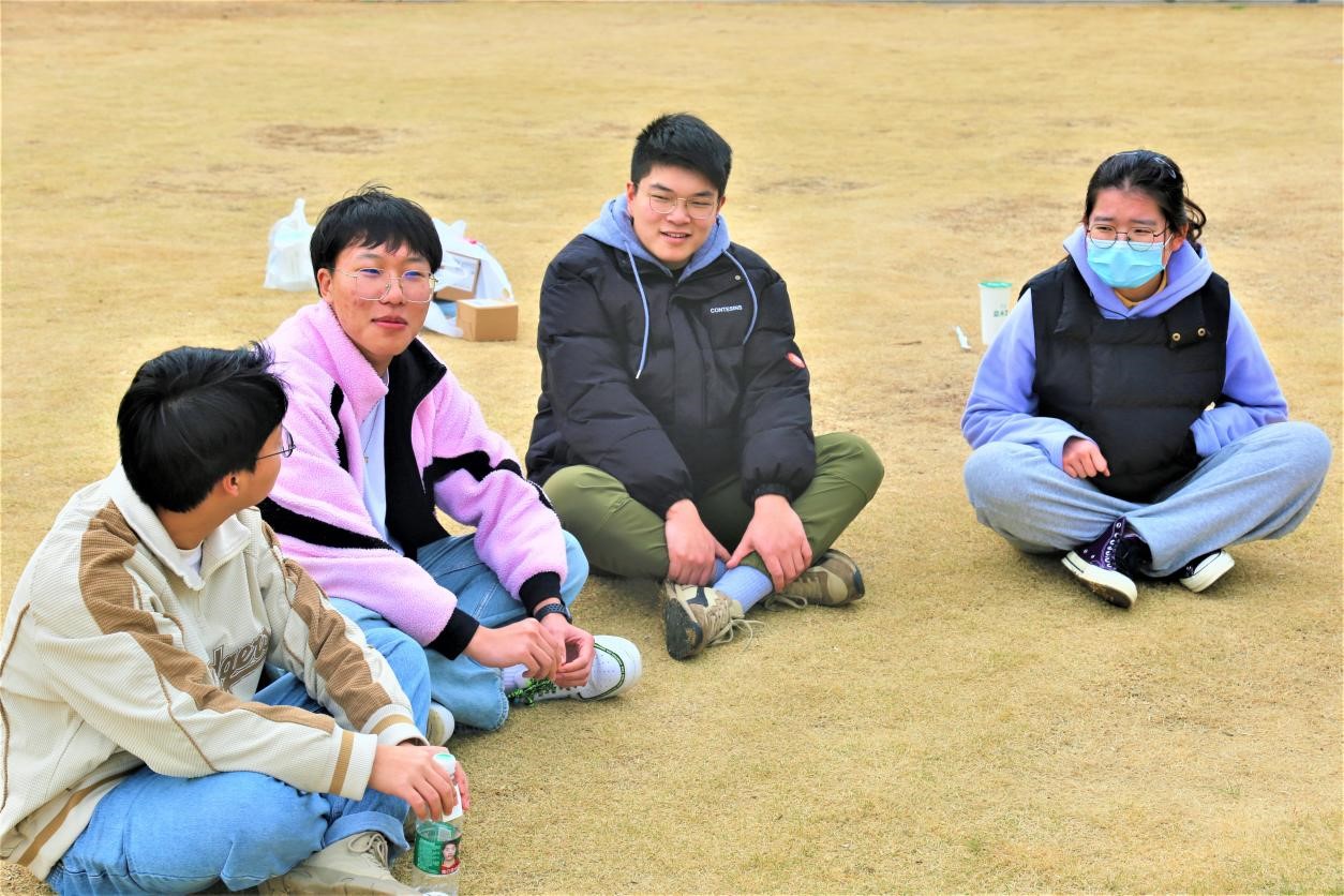大学生传媒中心新闻部与综合部在教五大草坪上开展联谊活动。