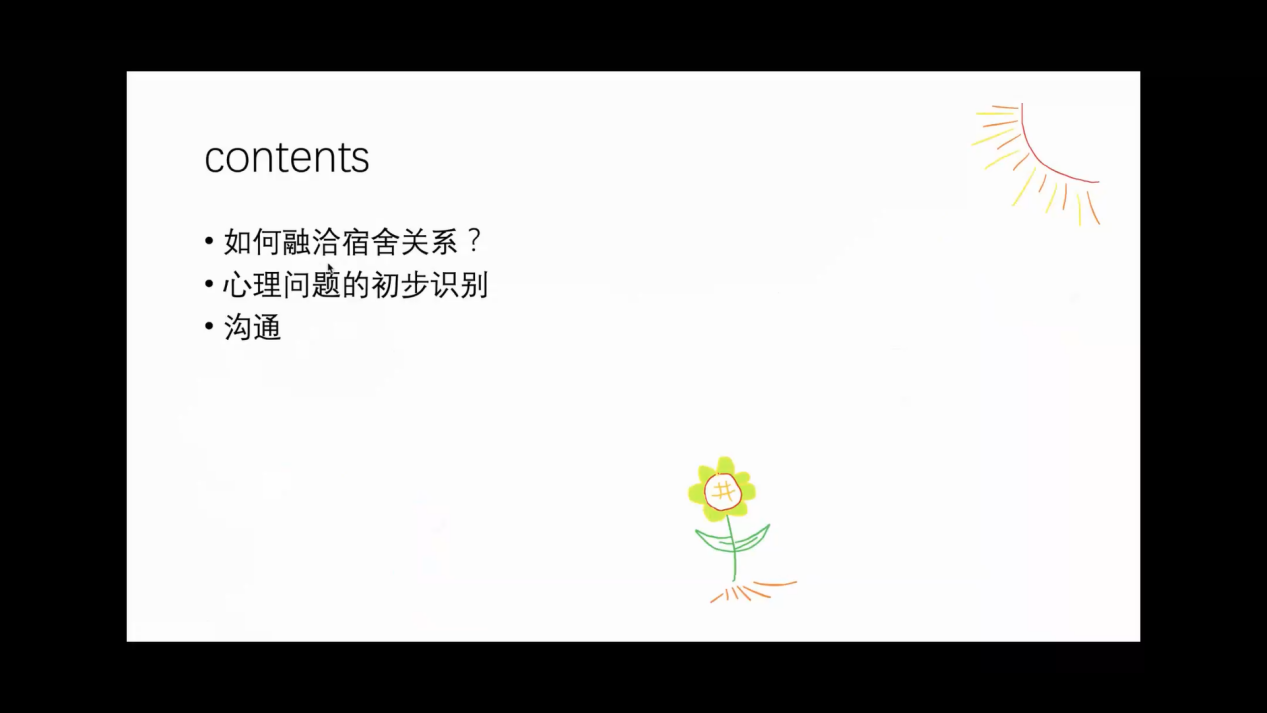 推进心理健康工作的重要举措之一,让同学们掌握了很多关于与舍友沟通、识别心理问题的方法,有利于缓解常态化疫情防控下的紧张情绪,营造和谐、友爱的宿舍关系。