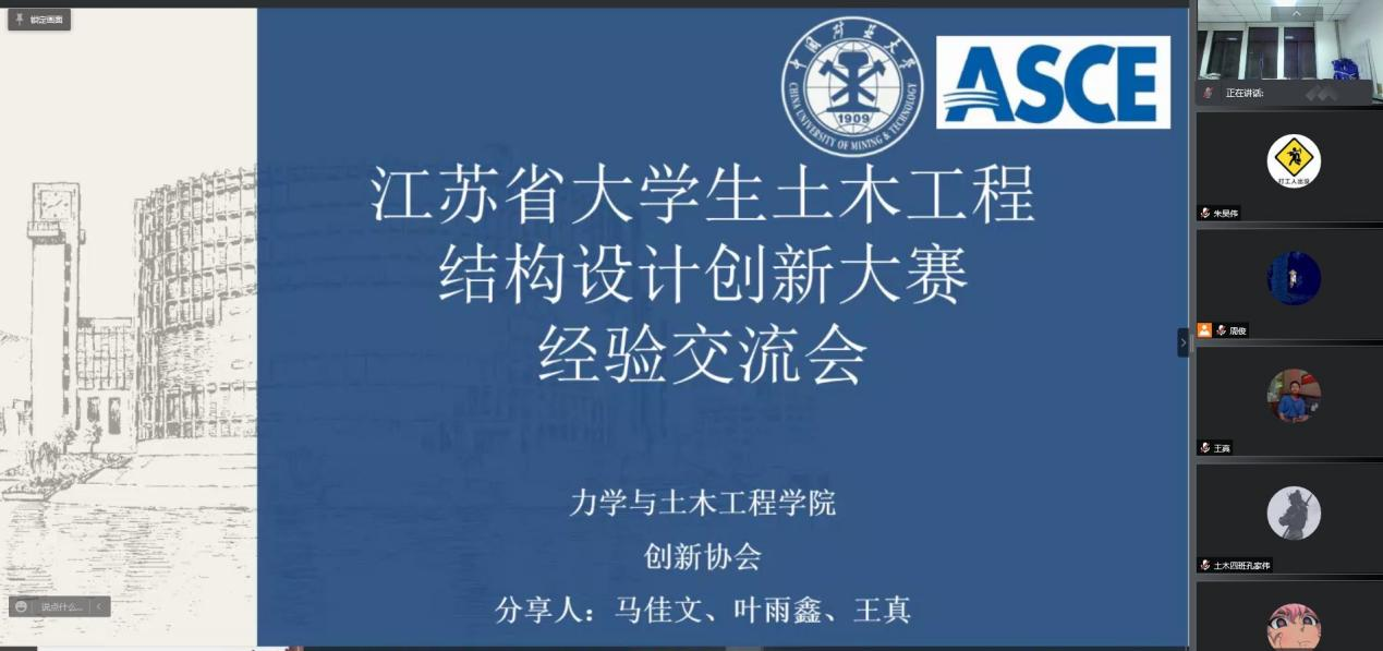 科技创新协会开展江苏省结构设计创新大赛经验分享会。荣获2021年江苏省结构设计创新大赛模型展示组的特等奖队伍成员马佳文同学、王真同学以及叶雨鑫同学受邀作经验分享,本次分享会由马佳文同学主讲。