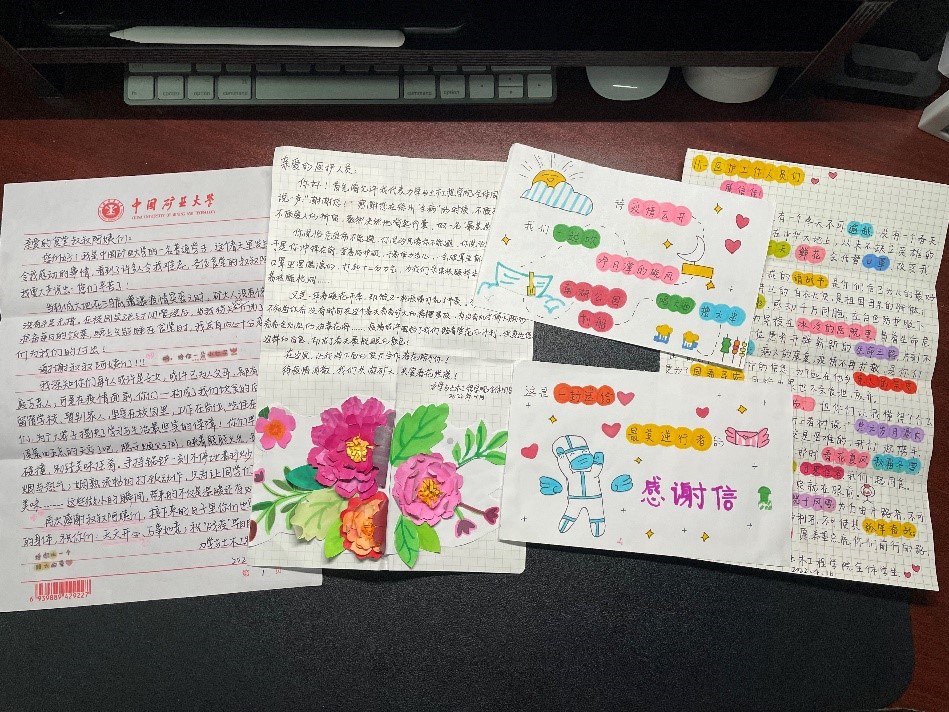 自疫情发生以来,为保障所有在校师生的生命健康,防止疫情扩散,保洁、保安等人员迅速落实校党委的部署,以“校”为家,坚守岗位,筑牢校园疫情防控第一道防线。本次活动以书信为纽带,通过真诚的文字对医护人员、后勤人员、教师等奋战在抗疫一线的英雄们表达感谢。“千言万语道不尽我的感动与感谢,只希望从今以后疫情退散,家国平安。”参加此次活动的同学们被他们勇于担当、甘于奉献的精神所感动。收到信的保卫人员说:“这封感谢信给了我莫大的鼓舞,让我更加感受到了学校师生对我的关爱,在疫情防控期间,我将继续做好值守工作,严格落实进出规定,做好校园安全的守护者。”