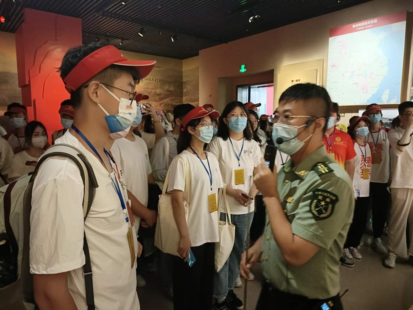 实践团成员在延安革命纪念馆聆听讲解员讲述先辈们的事迹