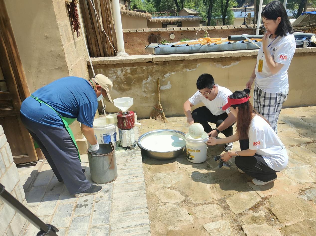 图为实践团成员体验豆腐制作
