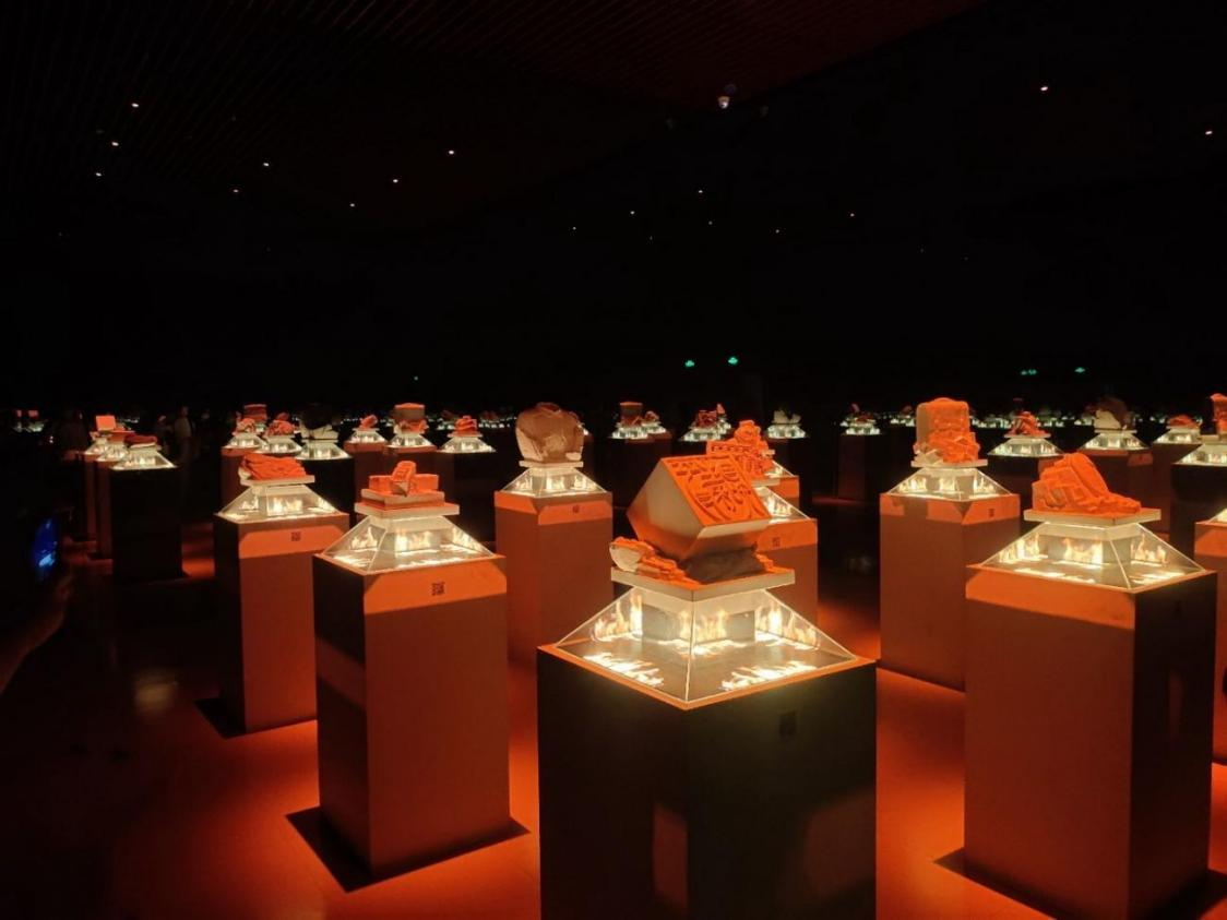 感谢过工作人员后,实践团沿着革命先烈的步伐走到了本次参观的尾声——缅怀厅。一进门,黑暗中绽放的簇簇“火焰”在无尽地延伸,白色石雕在“火焰”之上寂然肃立,象征着革命精神的生生不息。通过扫描黑色柱身上的二维码,实践团成员了解到了一个个如同雨花石般璀璨的革命事迹。
