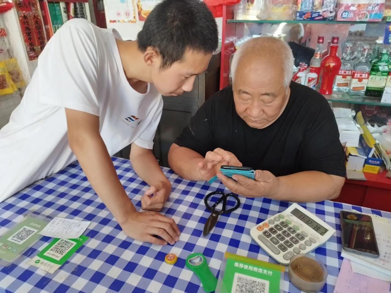 实践团成员协助村民填写调查问卷现场