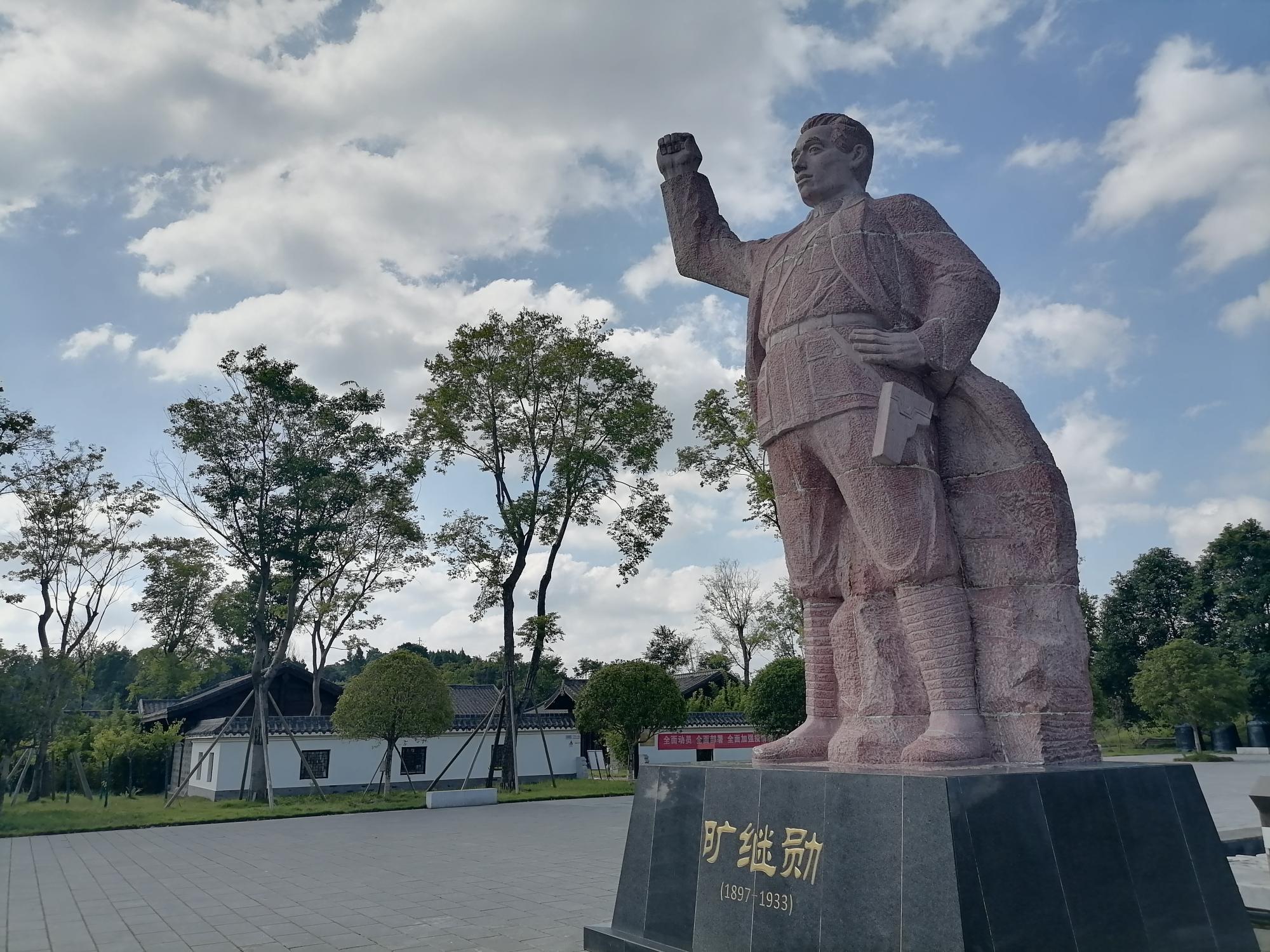 图为纪念馆前的旷继勋雕像
