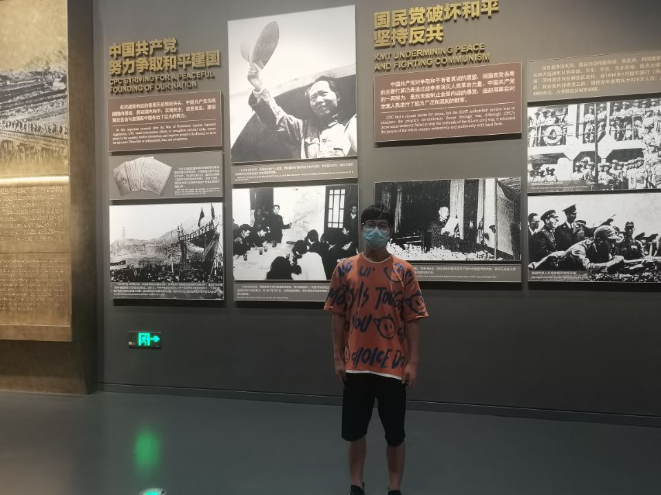 8月20日,实践团成员赴淮海战役纪念馆进行社会实践。上午10点,实践团成员在工作人员的带领下进入淮海战役纪念馆。走进大厅,正前方墙壁上雕刻着“人民的胜利”五个大字,代表着淮海战役伟大胜利的光辉历史如这鎏金字迹般熠熠生辉。跟随工作人员的步伐,穿过长廊,两边有参加淮海战役的革命战士浮雕,他们坚毅的眼神和冲锋的姿态,让实践团成员身临其境般感受到战士们抗战的决心和信心。之后,实践团成员来到一块显示屏前,上面播放着淮海战役的相关影视资料,实践团成员肃立着向英勇无畏的战士致敬。随后,实践团成员在关于淮海战役经过的解说中来到另一处大厅,地图上展示的是淮海战役的攻势图,一旁介绍了与淮海战役相关的血战大王庄、徐东阻击战等重要战役。最后,实践团成员参观了淮海战役期间战士们使用过的枪支、戴过的头盔以及通讯工具。