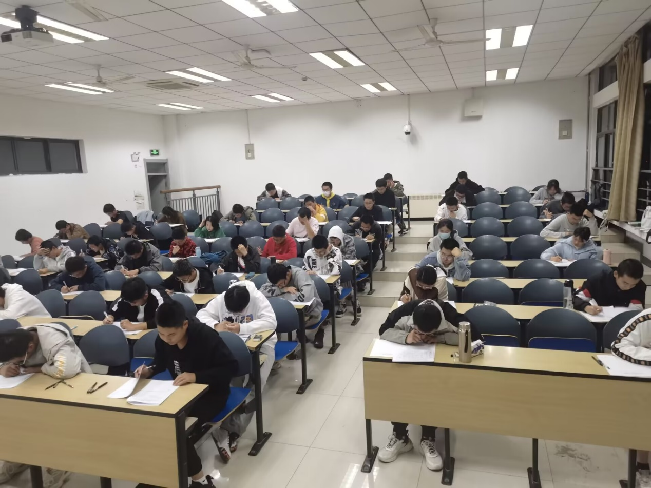 大四的优秀学长出题,试卷难度比正常期末考试略微偏大,旨在帮助2022级新生进行查漏补缺。考试的监考人员由学生会各部门人员以及招募的志愿者组成,考试座位按照正常考试流程,考试时间100分钟也进行严格把控。全体2022级新生也对此次模拟考试非常重视,考试过程中所有同学都全神贯注,认真答题,争取都取得良好的成绩。
