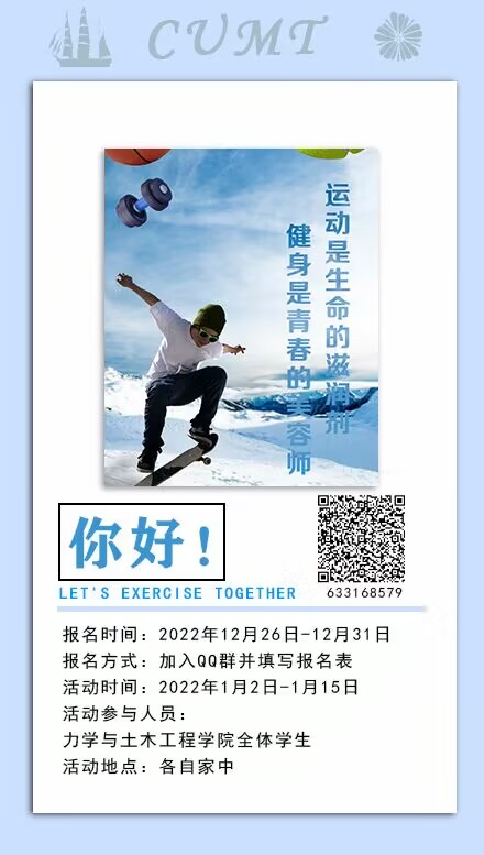 为丰富假期生活,激发同学们的运动热情,弘扬“奉献、友爱、互助、进步”的志愿服务精神,1月2日至1月15日,澳门六合彩最准资料