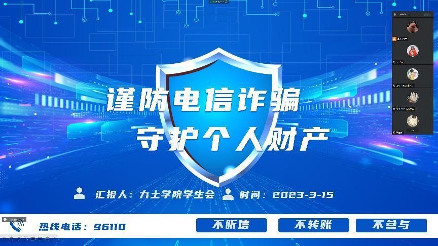 学生会于线上开展了防电信诈骗常识分享会。学生会部分成员参与此次网络分享会,会议由学生会综合部部长杨栋宇主持。