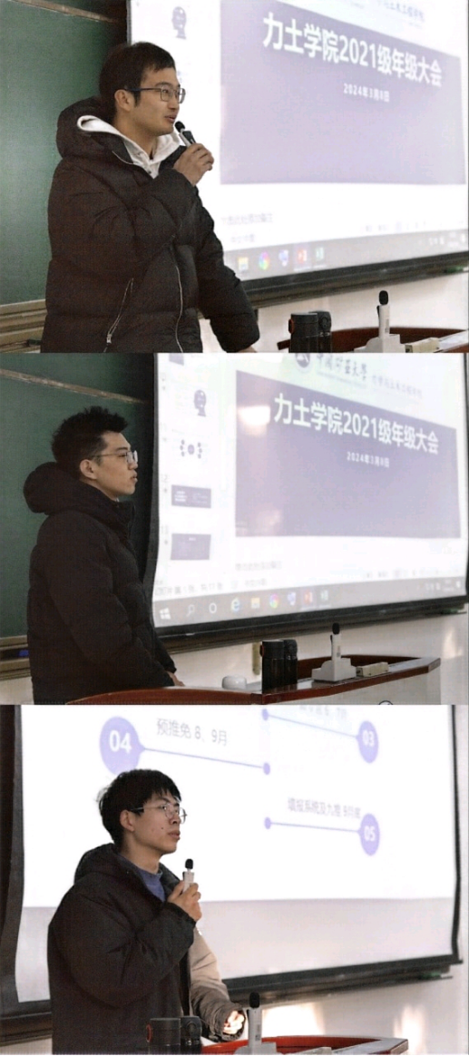 2021级学生于博2C202召开新学期第一次年级大会,2021级土木工程专业专职辅导员张琳,兼职辅导员杜昕、王瑜以及21级全体学生参加。