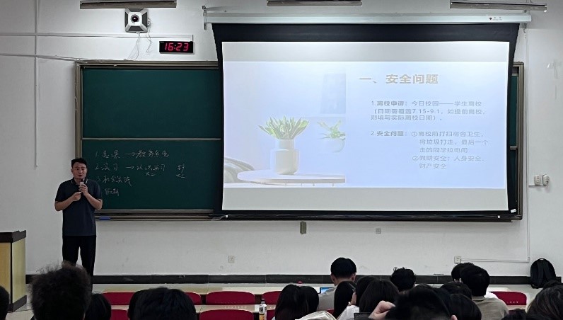 在社会实践方面,陈忠伟老师向大家讲解了暑期社会实践的考核要求,并提醒各位同学利用好暑假的时间培养好适应社会的能力,高质量地完成社会实践。