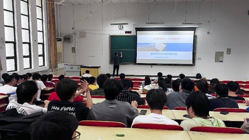于博2C101召开了合作办学专业2022级年级大会。会议由辅导员陈忠伟老师主持,合作办学2022级全体学生参会。