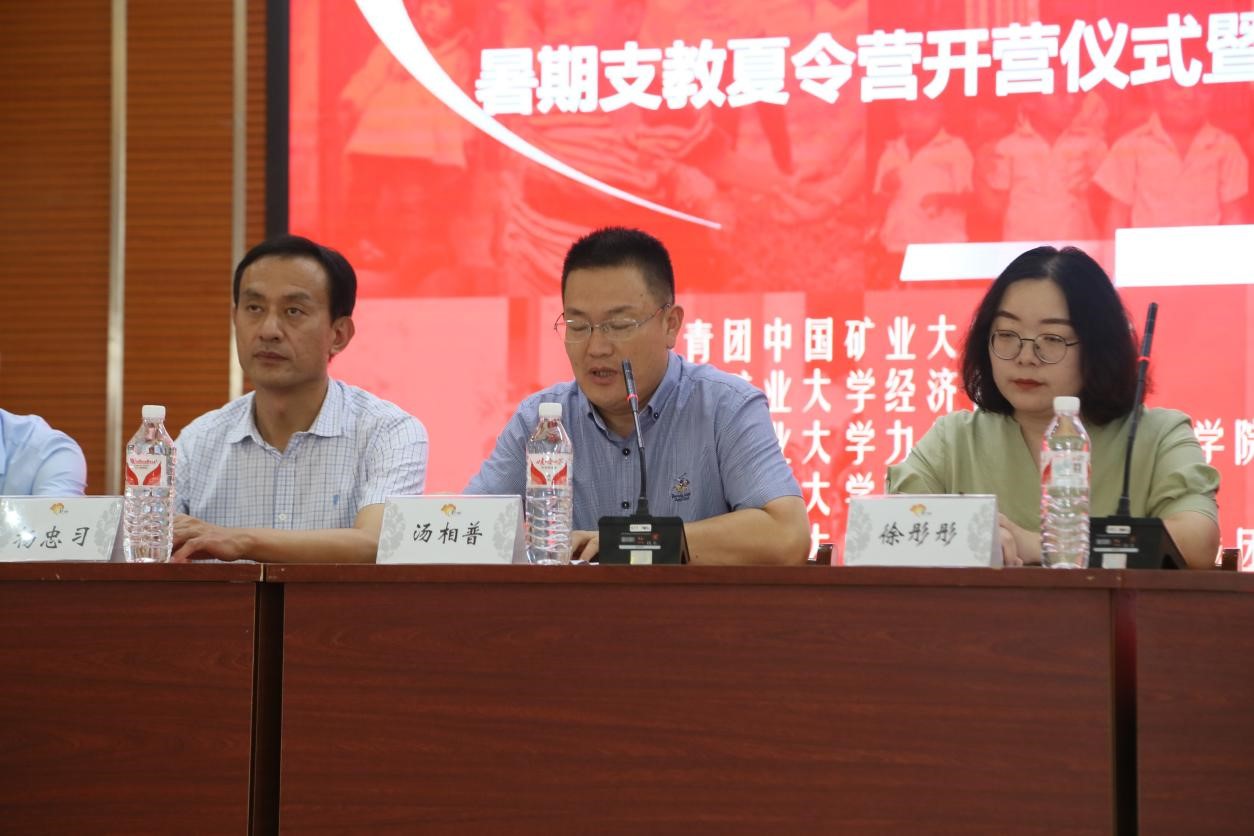 仪式伊始,汤相普首先对支教团的到来表示热烈的欢迎,肯定支教活动为当地学生带来的成效,并提出了进一步深化邳州市与我校在教育上合作的愿景。随后,徐彤彤对邳州市以及八义集镇中心小学对我校社会实践和支教活动的大力支持表达了衷心的感谢,也希望能够与当地建立长期的合作关系。衡琳琳肯定了支教活动对当地儿童带来积极意义,并预祝本次支教活动取得圆满的成功。接着,李佳奕代表支教团承诺,将全力以赴地完成支教任务,帮助和引导孩子们健康成长,放飞希望。最后,由沈梦雅宣布暑期支教夏令营开营。