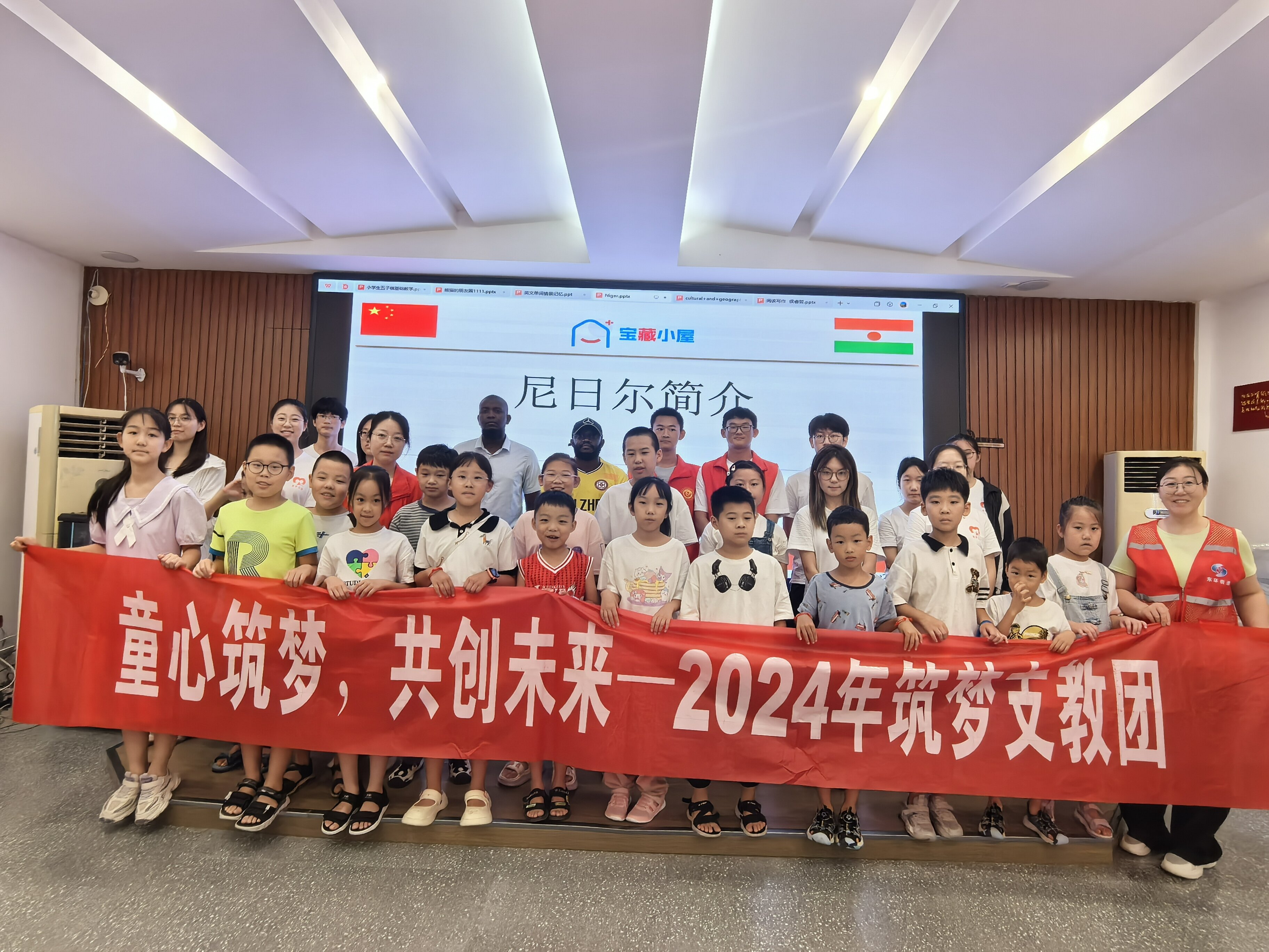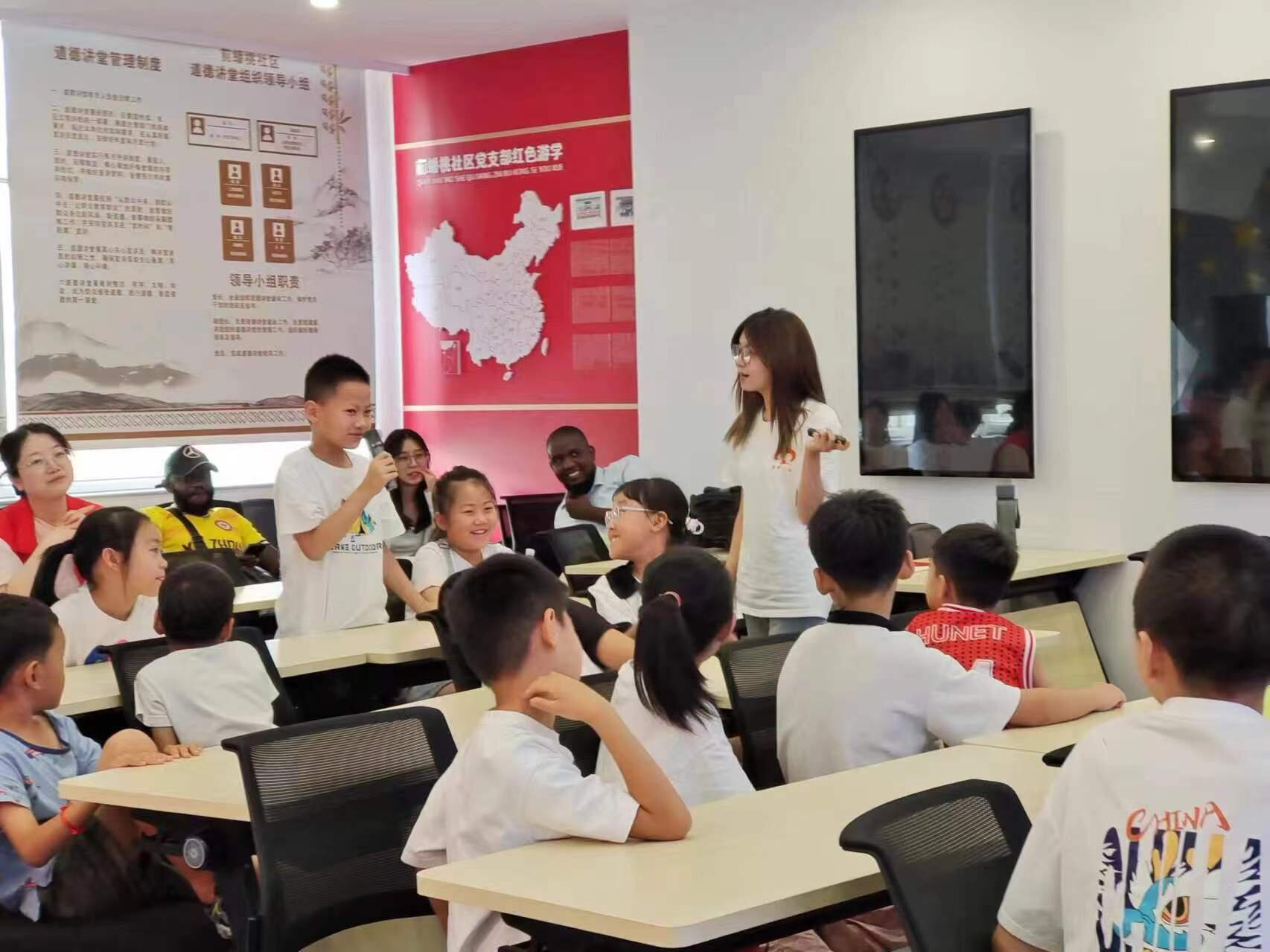 7月19日,随着暑假的到来和实践活动的高涨,中国矿业大学“探索鼓楼特色爱心暑托班服务新模式”项目火热进行。项目以中外合作为主要形式,以“童心筑梦,共创未来”筑梦爱心公益教育实践团为载体。队伍中还有两位外国同学,分别是来自尼日尔的曼多,来自赞比亚的奥古丝。实践团共同赴往前蟠桃社区,给社区孩子们带来别开生面的暑期课堂。