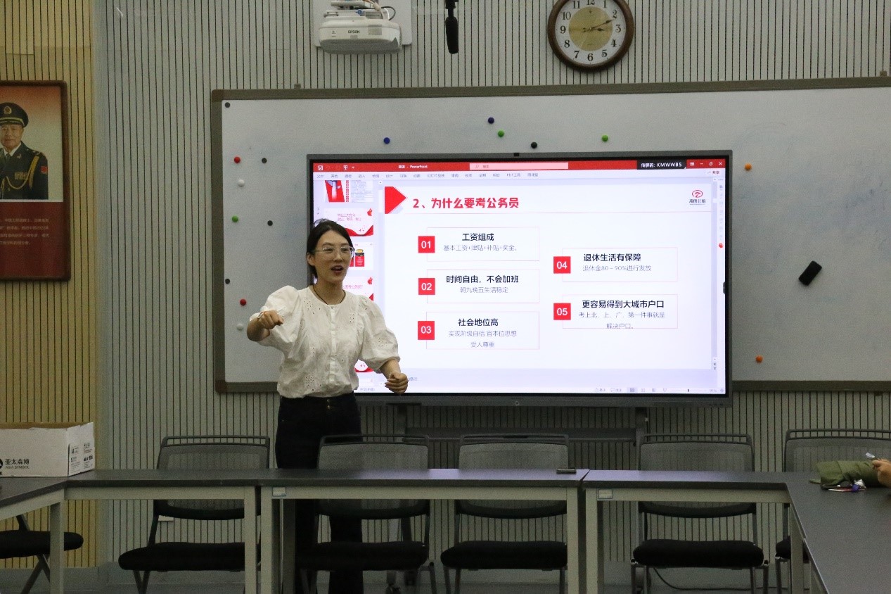 楼B201开展考公指导讲座,展途公考的侯一珂老师受邀到现场进行指导。此次讲座不仅为学生们解答了考公务员的诸多疑问,还提供了实用的备考建议,旨在帮助同学们更好地规划未来。