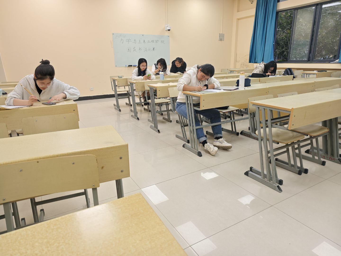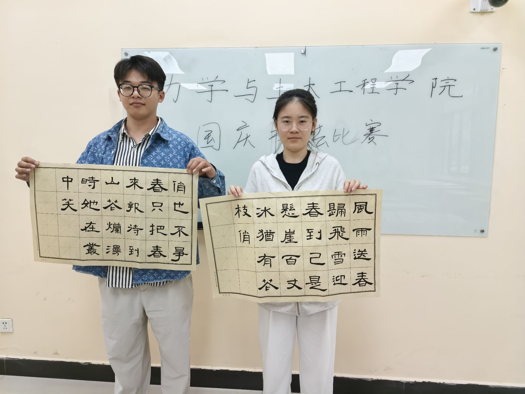 此次书法比赛分为软笔组和硬笔组两个类别,进一步细分为线上初赛和线下复赛两个阶段。线上初赛于10月1日至10月7日进行,参赛选手通过提交电子作品的方式参与。参赛者们在这段时间内,通过精心准备,以书法作品表达对祖国的祝福与热爱,作品内容涵盖了爱国诗词、名句以及自己创作的内容。线上初赛不仅提高了选手们的书法水平,也为同学们提供了一个展现自我、交流学习的平台。