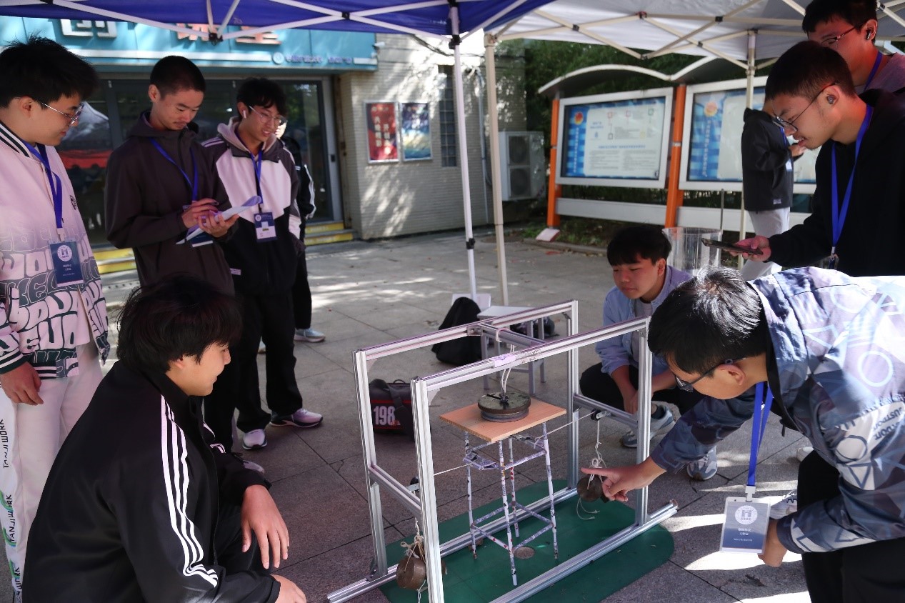 参赛选手需要在比赛开始前自由组队,在规定时间内领取所需材料并制作参赛模型。比赛在上午8点正式开始。赶到赛场的各组选手在工作人员的指导下首先对参赛模型进行称重,随后进行加载。这个过程要求各组人员逐级加载共5级的砝码。现场,参赛选手们紧张但有序地进行加载,观众也认真关注比赛进展,不时低声讨论各模型的美观和稳定性。每当有一组队伍的模型成功通过5级加载,现场便爆发出阵阵掌声。队伍成员激动地与他们建造的模型合影,而那些未能如愿的队伍则决定明年再来挑战。最终,比赛于当日下午6点结束。