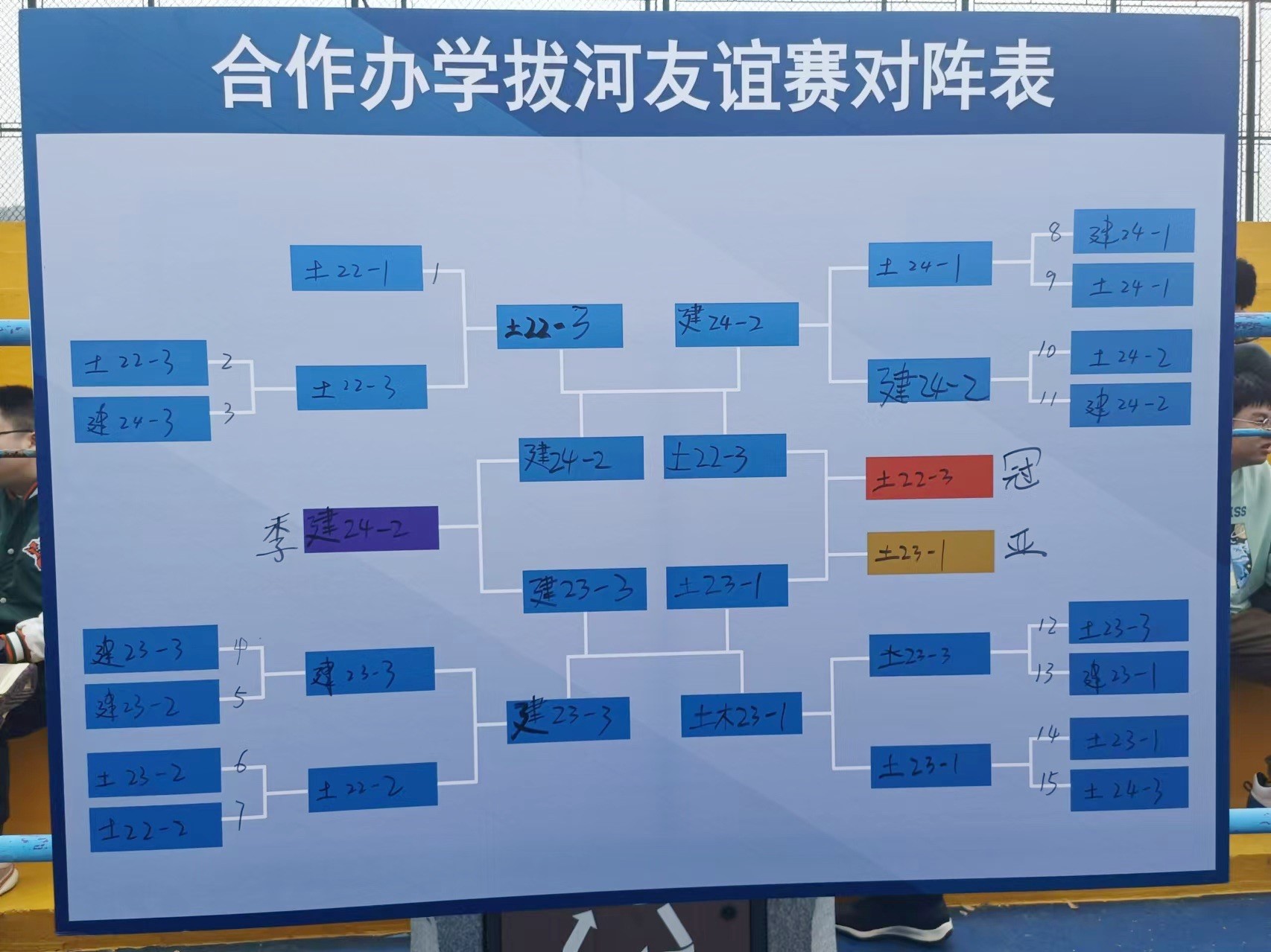 经过激烈的比拼和角逐,土木(合作办学)22-3班获得了本次拔河比赛的冠军,土木(合作办学)23-1班获得了亚军,建环(合作办学)24-2班获得了本次比赛的季军。此次拔河比赛不仅是一场力量的较量,更是一次心灵的交流。不同年级的学生通过比赛相互认识,打破了年级壁垒,增进了相互间的了解,碰撞出友谊的火花。同时,比赛也为学生们提供了一个释放压力的平台,丰富了课余生活,增加了校园生活的趣味性。