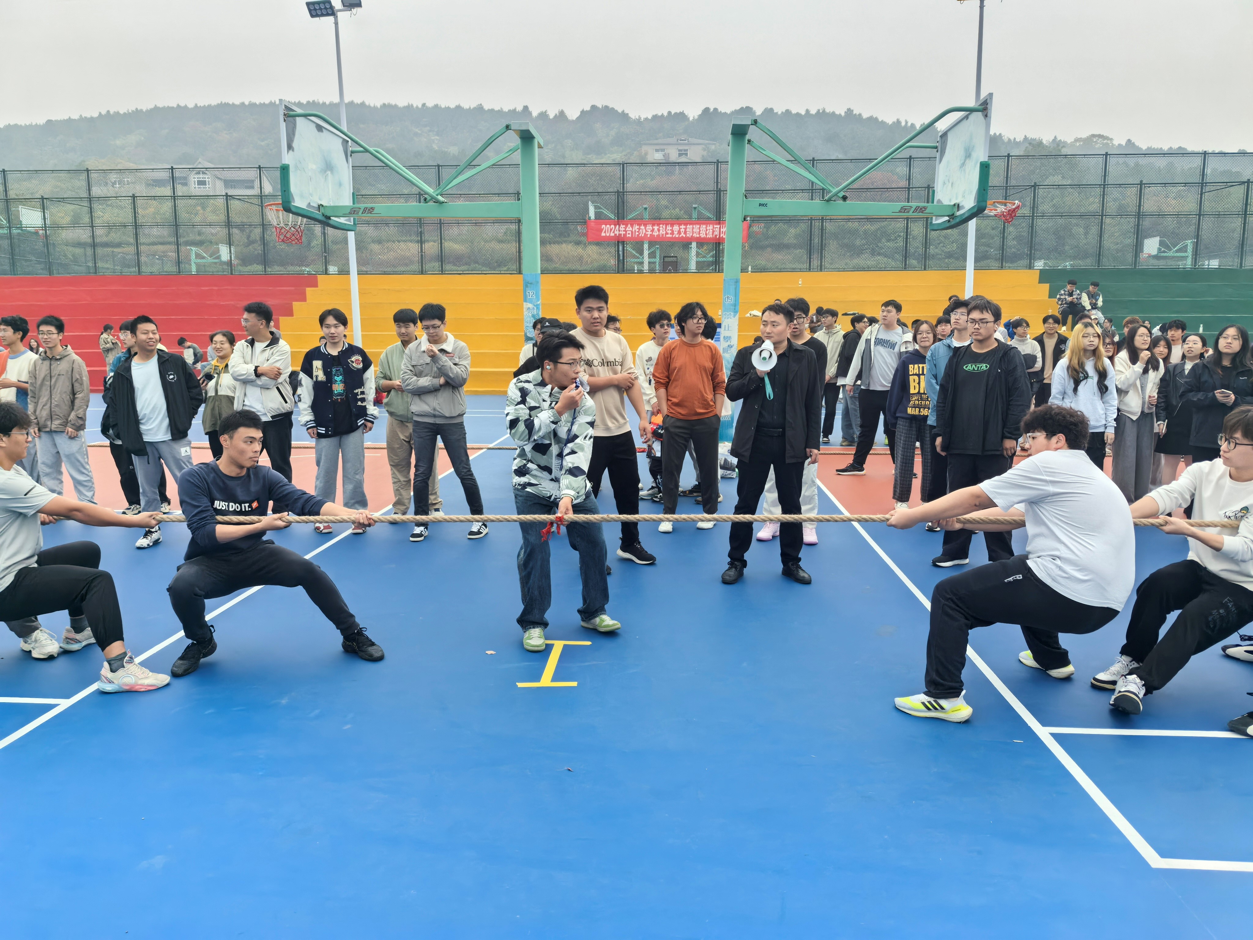 为丰富同学们的校园文化生活,加强合作办学班级、年级同学之间的沟通交流,增强集体凝聚力和同学之间的团结协作精神,合作办学本科生党支部于2024年10月27日在桃苑篮球场举办了一场拔河比赛。合作办学2022级、2023级、2024级全体同学共15个班以班级为单位参与了此次比赛。