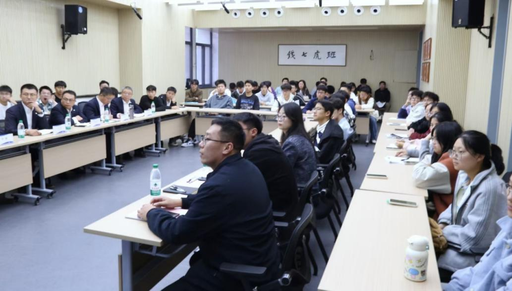 座谈会伊始,集团播放招录简章视频,徐海超向与会者介绍了各年级学生的生源构成及就业调查概况。随后,于曰江针对企业业态、招录素质标准、实习项目及可提供的科研项目平台等方面进行了简要概述。结合自身丰富的职场经历,于曰江不仅分享了宝贵的就业经验,还针对同学们在就业方面存在的疑虑进行了详尽解答,并热情邀请同学们积极提问。