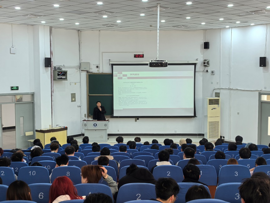 的学风建设方案,希望大家以学风建设为契机,树立学习目标,共同营造良好的学习氛围。随后他对上学期学业情况进行了分析,指出当前同学们在学习过程中存在的突出问题,强调了课堂学习、课堂纪律、考试纪律的重要性。他指出,当前部分同学的学习态度呈现出散漫、懈怠的状态,不仅会影响个人当前的学业发展,也为未来的考研、出国等规划带来了挑战。
