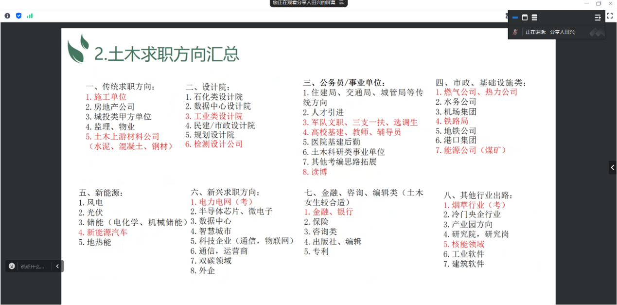 此次就业知识分享会为学生提供了与专家和前辈交流的机会,使学生对就业相关知识有了更全面的了解,也为学生的职业规划与个人发展提供了参考,助力他们在学业与职业道路上稳步前行。