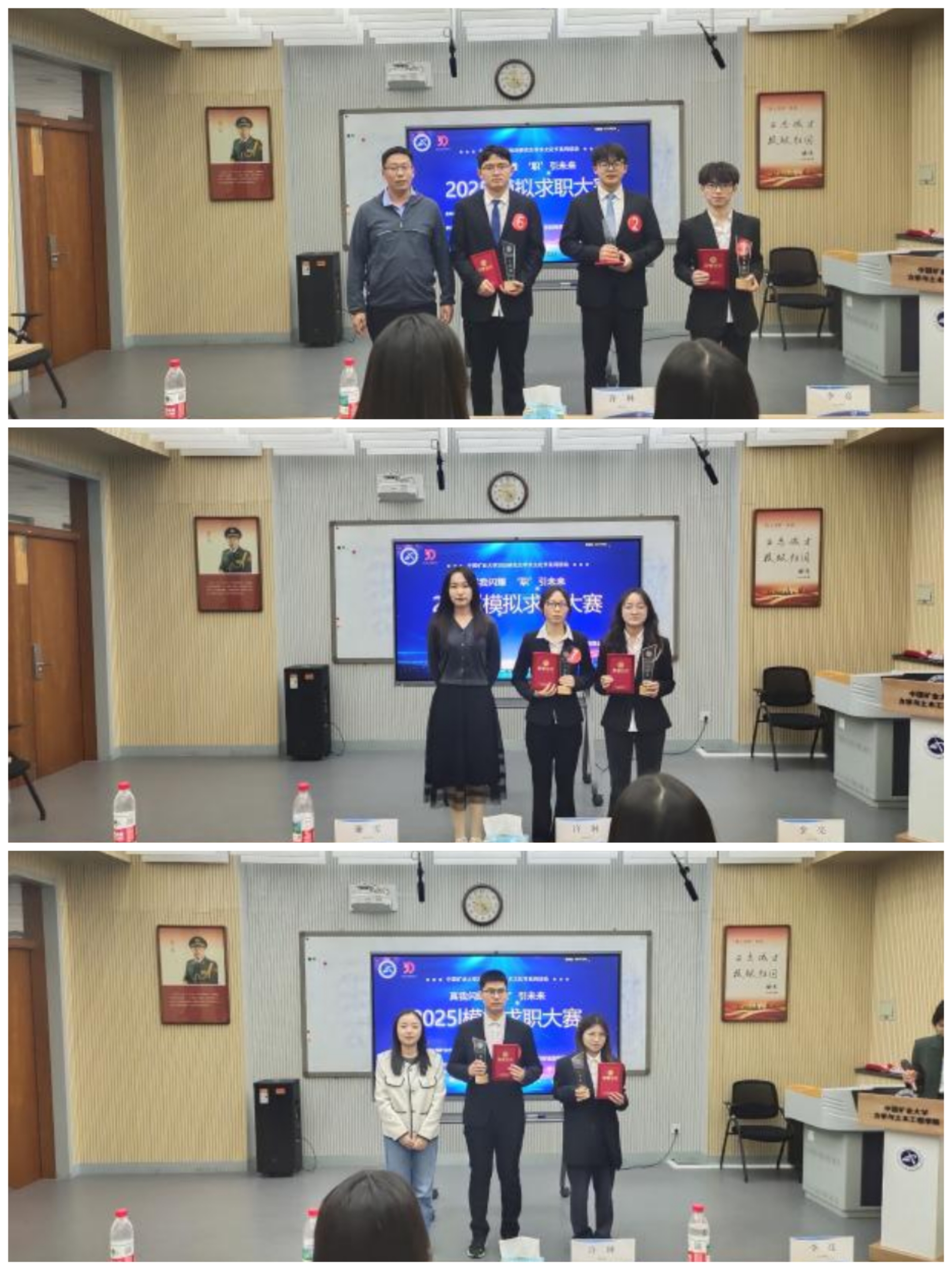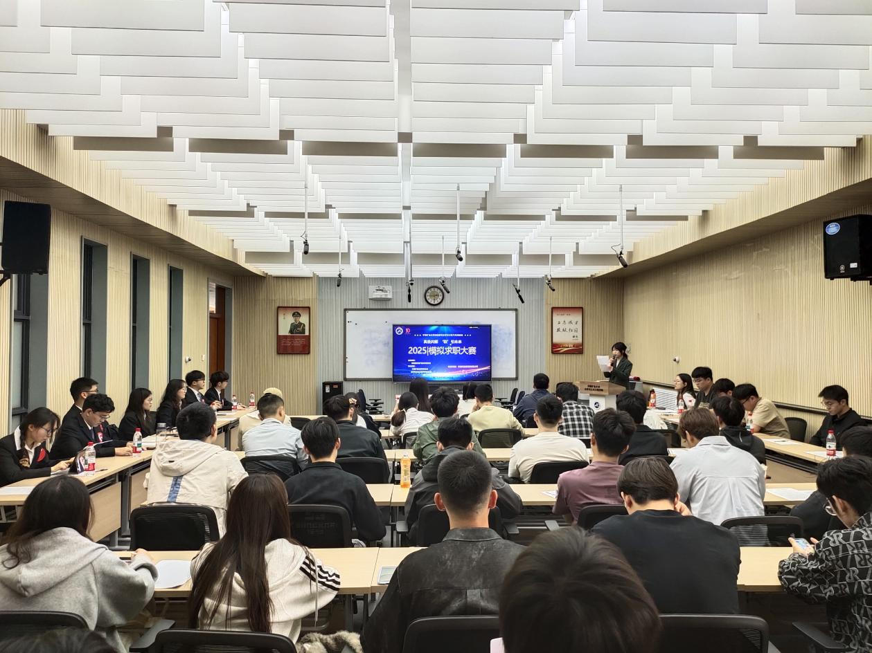 大赛环节设置了无领导小组讨论、个人展示、压力面试等环节。在无领导小组讨论环节,选手们围绕固定议题,既要清晰阐述个人见解,又要捕捉他人观点亮点、反驳不合理之处。评委从沟通表达、问题分析、临场应变等维度细致打分,对同学们的表现进行评价。在个人风采展示环节,同学们通过借助PPT,将个人的基本情况和求职优势向评委们进行了详细展示。在压力面试环节,同学们随机抽取问题并进行作答,同学们展现出了较强的的应变能力。经过激烈比拼,王申港凭借卓越表现斩获特等奖,童海丹荣获一等奖,施翌、张孟雪荣获二等奖,邱朔、杨雨霈、隆劲豪荣获三等奖。最后,两位评委对同学们的表现进行了点评,就如何更好的参加求职面试进行了针对性指导。