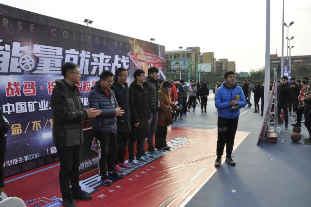 即使寒风凛冽,选手们对篮球的热情却丝毫不减。提前一小时便有球员来到场地进行热身准备。下午2时,活动拉开帷幕。在向参赛选手们强调了比赛纪律与规则,传达了比赛的宗旨与“友谊第一”的思想之后,随着一声哨响,比赛正式开始。篮球健儿们快速进入状态,积极进攻,果断防守,动作矫捷,快速传球,个个雄姿英发。赛场上,队员们协同一致,或护球,或开道,迅速逼近篮板,而对抗方则交替进攻,从对手的一丝丝批漏中寻得先机,果断出击。随着比赛的进行,双方队员体能都有下降,但是双方仍你来我往、互不相让。在一次次漂亮的跳跃投球中,赛事不断走向高潮,观众们爆发出阵阵欢呼与呐喊。