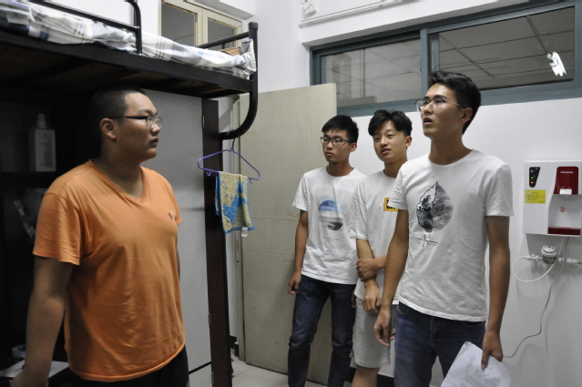 路铭老师对新生宿舍进行分配,并向大家讲解注意事项。随后,学生干部下宿舍活动正式开始。