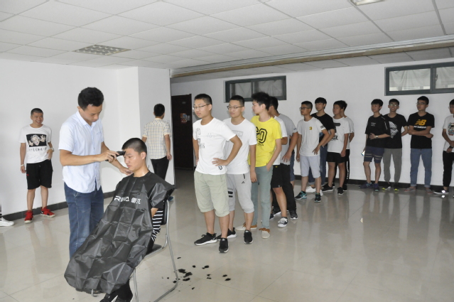 18级专职辅导员路铭老师亲自下宿舍楼为新生剪军训头,吹响了军训的第一声号角。