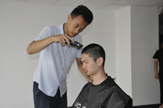 在剪军训头过程中,路铭老师与新生们进行了交流。“我是不是抢理发店的工作了!?”路铭老师这样与新生们开玩笑,新生也与路铭老师热情交流,甚至有位同学在剪完后又回来请求路铭老师再剪短一些,可见路铭老师平易近人,与新生相处融洽。同时,路铭老师还向新生指导了以后的大学之路,要求学生做到热爱学习,热爱集体,好学力行,做一个能传播正能量的大学生,真真正正地展现出土木学子应有的风采。
