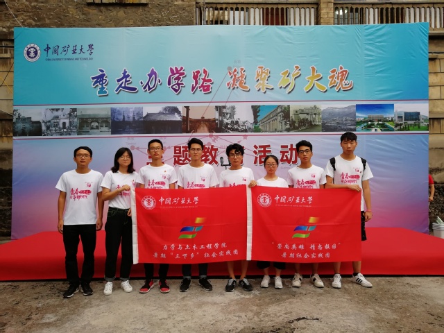 的老校友,他生动地描绘了当年建校的场景,如何制造炸药、如何开山炸石、如何制造水泥等等一系列工程项目。之后,老校友与实践团成员并行,为成员们介绍各个旧址,并讲述了旧址当年的故事。我们难以体会老校友为了建造校园所付出的艰辛,在我们的脑海中为了建设学校的劳动场景久久不能忘怀。之后,成员们开展了“重走办学路,凝聚矿大魂”主题教育活动,一起瞻仰学习当时矿大师生们的努力进取,自力更生。