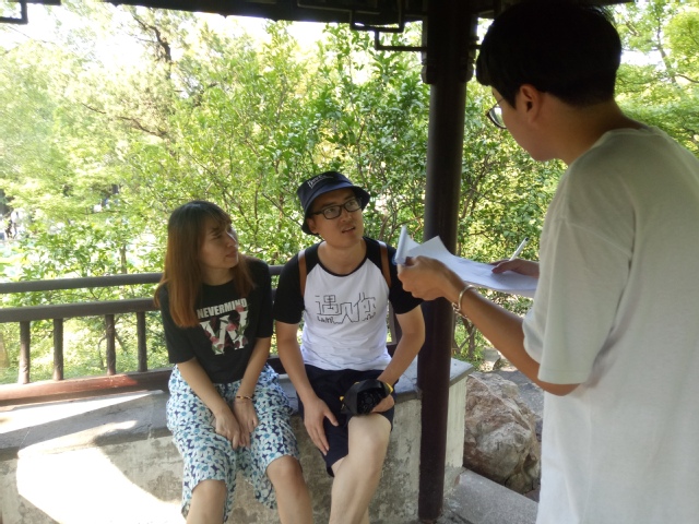 8月4日,调研团来到苏州,参观了苏州拙政园和狮子林,并对园林建筑的特色之处拍照记录。之后,走访了当地的居民,通过对当地居民的采访,了解到园林建筑被过度商业化,许多老建筑已失去原有的风格魅力。实践团为深入调研,便由当地居民指导,探寻部分已损建筑,并拍照记录,同时,与当地居民深入交流,了解已损建筑的被损历史 。此外,调研团分别向两地游客发放问卷,了解游客对古建筑及古建筑保护认识的情况。